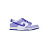 In a classic leather build, the Nike Dunk Low GS 'Blueberry' is sized for big kids. With forefoot and heel overlays in Light Thistle, the upper features a crisp white base. A darker shade of lapis is applied to the laces, signature Swoosh, and Nike heel tab. Featuring a traditional rubber cupsole with a foam wedge for lightweight cushioning, the low-profile silhouette rests on top of a traditional rubber cupsole. Underfoot, the purple rubber outsole utilizes a traction pattern originally designed to grip the hardwood.